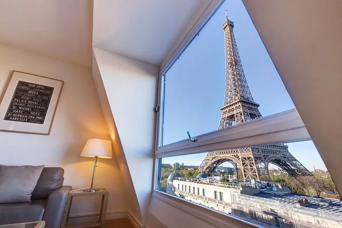 - Pemandangan langsung Menara Eiffel dari kamar tertentu