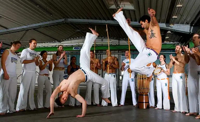 Capoeira adalah seni bela diri yang berasal dari Brasil, menggabungkan elemen tari, akrobatik, dan musik. Olahraga ini sering dimainkan dalam lingkaran dan melibatkan gerakan yang dinamis dan artistik. Capoeira memiliki sejarah yang kuat terkait dengan perjuangan kebebasan budak di Brasil, dan sampai saat ini tetap menjadi simbol budaya dan identitas Brasil.