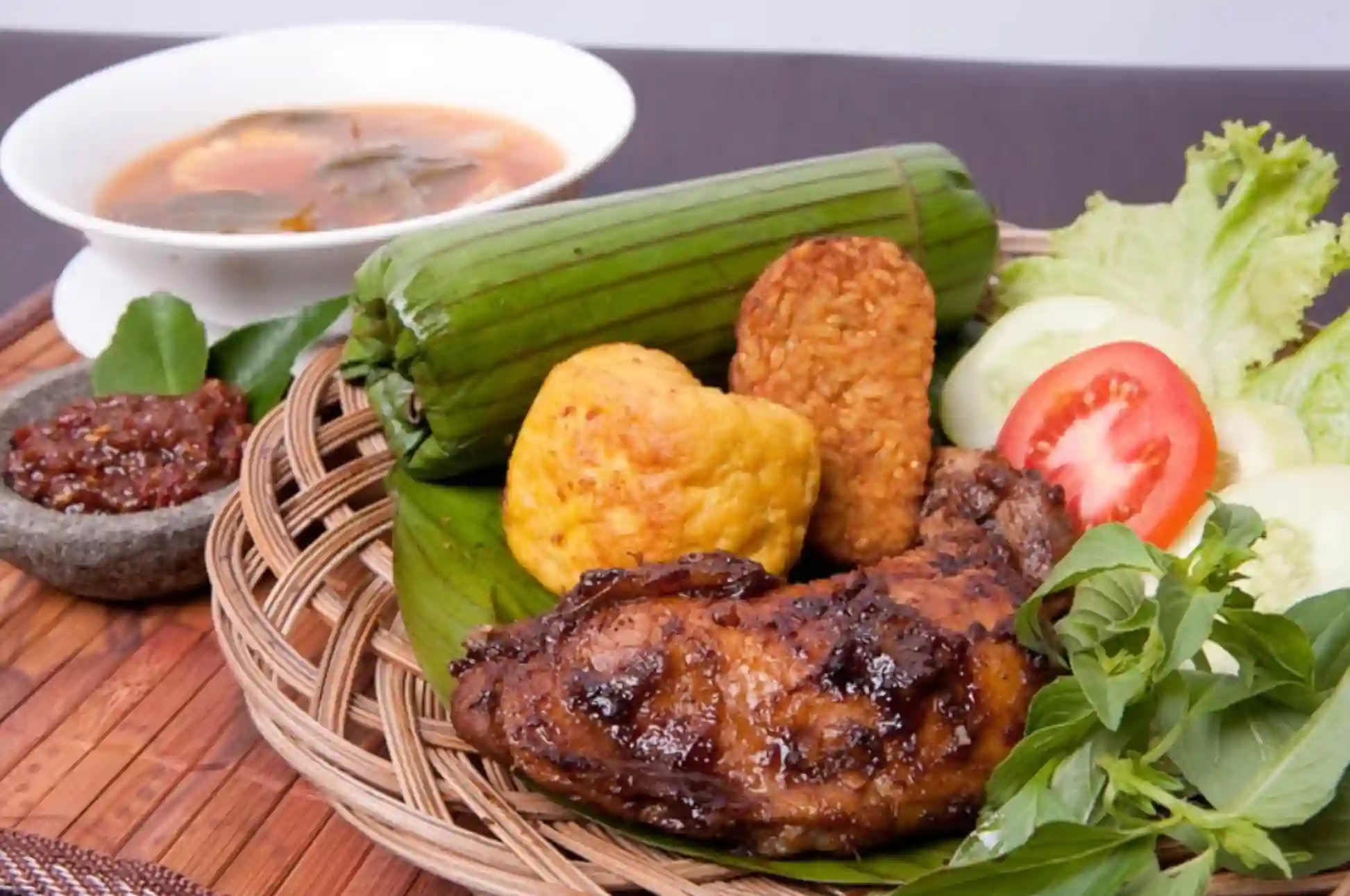 Disajikan dengan daun pisang, nasi timbel biasanya ditemani ayam goreng, tempe, tahu, lalapan, sambal dadak, serta sayur asem. Kombinasi ini bukan hanya menggugah selera, tetapi juga mencerminkan filosofi makanan sederhana yang kaya akan makna kebersamaan.