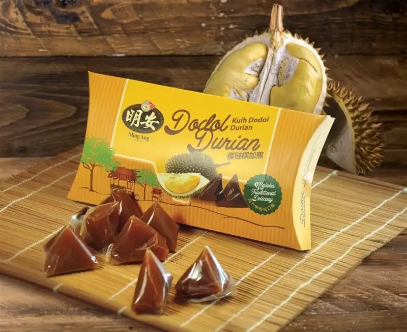 Durian adalah buah yang sangat populer di Malaysia dan menjadi bahan utama dalam pembuatan dodol, makanan tradisional yang kenyal dan manis. Dodol durian, dengan rasa khas dan aroma duriannya yang kuat, menjadi salah satu oleh-oleh paling dicari. Teksturnya lembut, dan rasanya yang manis akan mengingatkan Anda pada cita rasa Malaysia setiap kali mencicipinya. Dodol ini biasanya dibungkus rapi sehingga mudah dibawa pulang, dan tersedia dalam berbagai ukuran sesuai kebutuhan Anda.