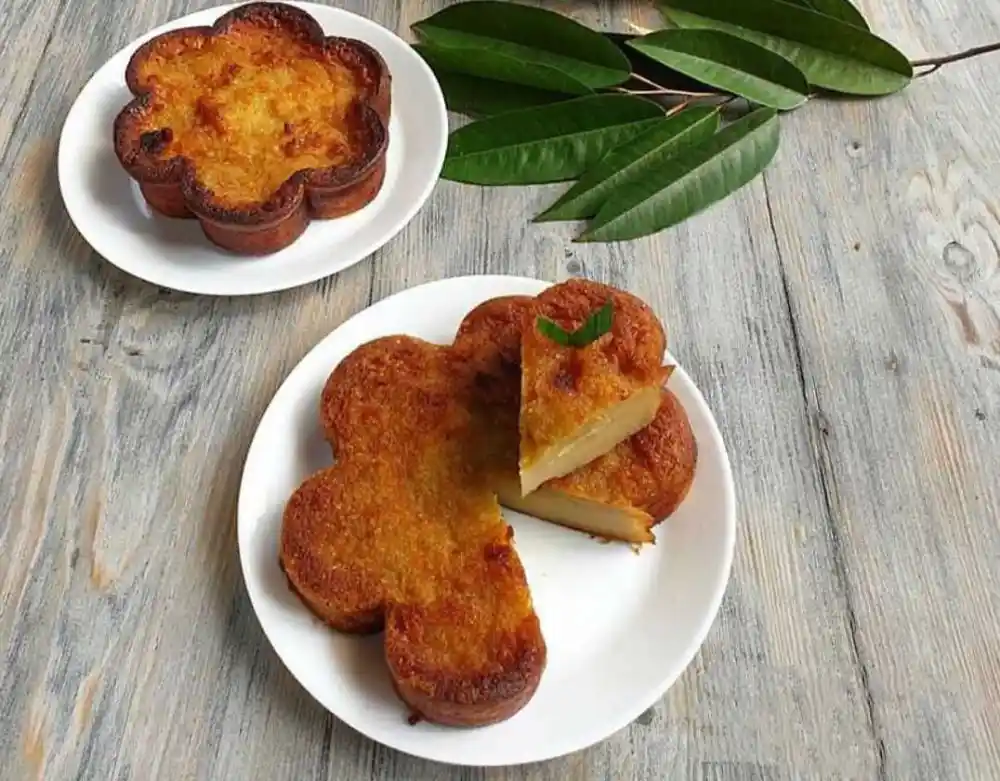 Kue Bingka Bakar biasanya dibuat dalam bentuk cetakan bunga yang cantik, dengan permukaan yang sedikit gosong karena proses pemanggangan. Terdapat berbagai varian rasa, seperti pandan, durian, dan keju. Kue ini cocok sebagai camilan manis untuk dinikmati bersama keluarga.